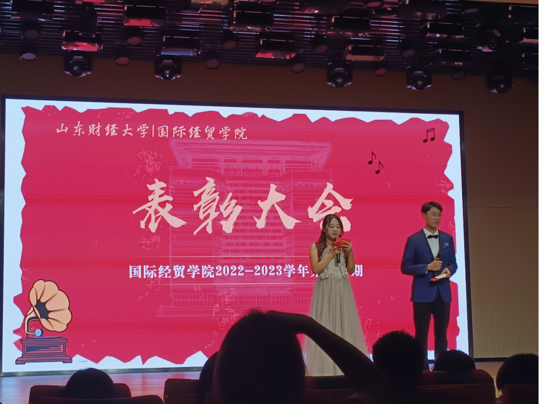 国际经贸学院在圣井校区文化活动中心召开了“闪耀的你”学院表彰大会,学院党委书记崔东峰,党委副书记王斐斐,团委书记蒋静,学院辅导员王思远、李瑞雪、李亚莉、房甄参加了此次活动。