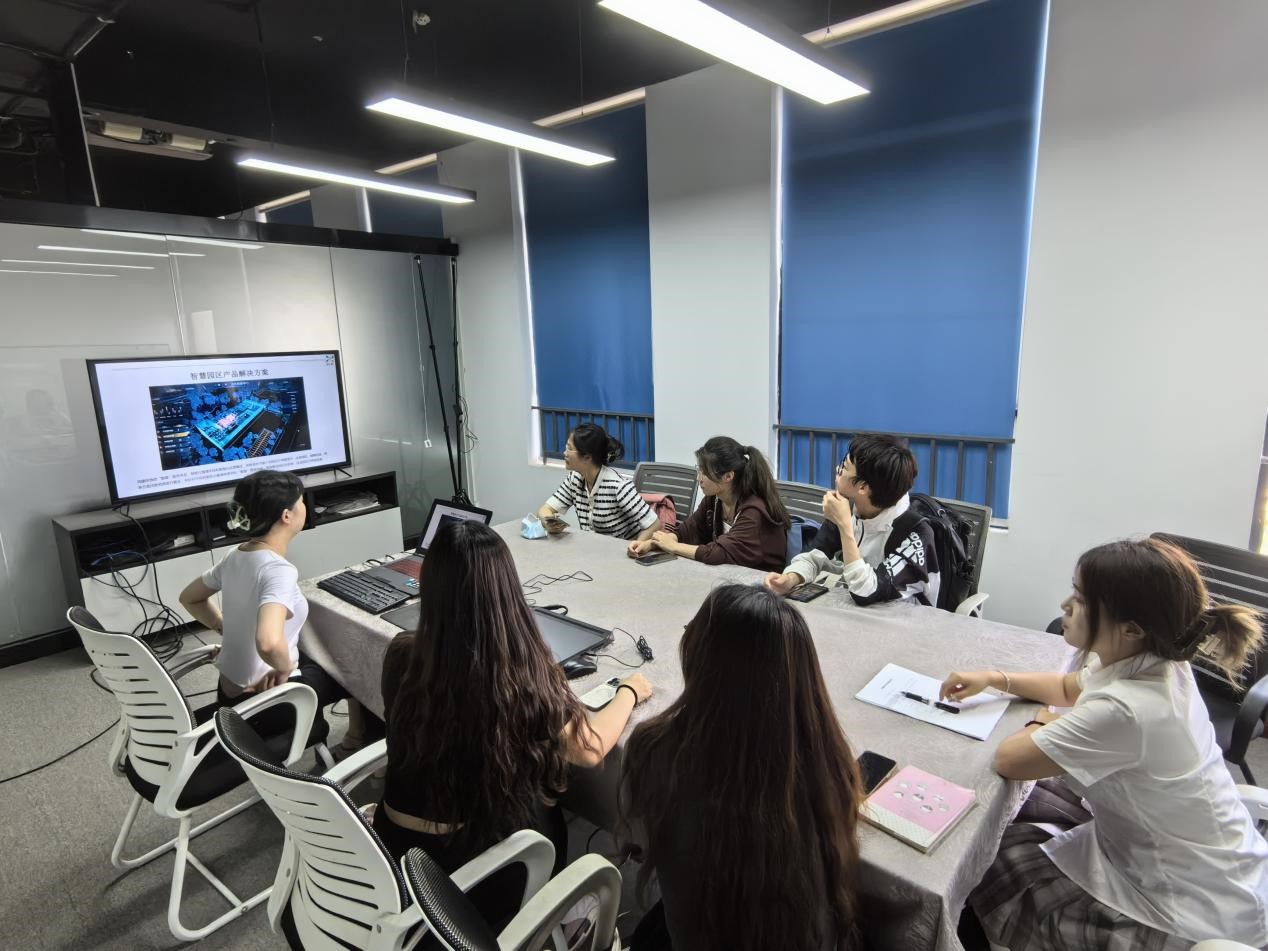 武汉新影数字科技公司是一家智能制造公司,其主要的业务是为相关的制造企业提供科技服务。公司负责人向我们介绍了公司已经取得的成就以及已投入使用的相关产品。在同负责人进行交流之后,队员黄星语也向负责人请教了关于贵公司对于新旧动能转换的实施举措以及企业未来发展规划。负责人也是以智慧产业——数字孪生产品为主,向队员们展现了一个智慧型工厂。这种对于传统型的突破,让队员万梦佳感慨不已:“智慧化的工厂通过机器人监督与模拟化测试,大大降低了对传统型人工成本的消耗,同时也提升了管理能力。”同时,管理科学与工程学院2023级管理科学与工程类六班的李世卓对于新旧动能转换感触颇深:“智慧工厂将制造过程中的废气等物质进行循环利用,不仅提高了资源利用率,突破了传统的动能使用,而且还能够同环境政策相呼应。这是未来一个很大的发展趋势。”