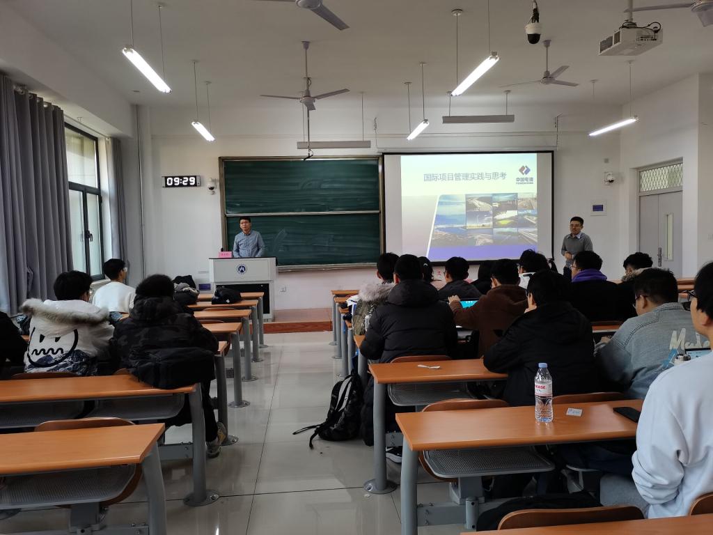 马主任以“国际项目管理实践与思考”为主题,充分结合自身多年在海外参与国际工程项目的实践经验和丰富案例,从国际项目变化趋势、国际项目人才需求、国际项目工作感受和国际项目文化差异四大方面,为同学们全面细致的介绍了国际项目管理的工作性质和发展前景。