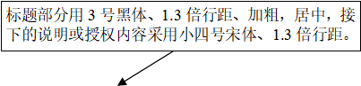 条 标 题:小四号黑体居左(条标题以下标题,采用阿拉伯数字标号,空两个字开始书写,如:1.----;(1)----;①----等,根据需要使用。)
