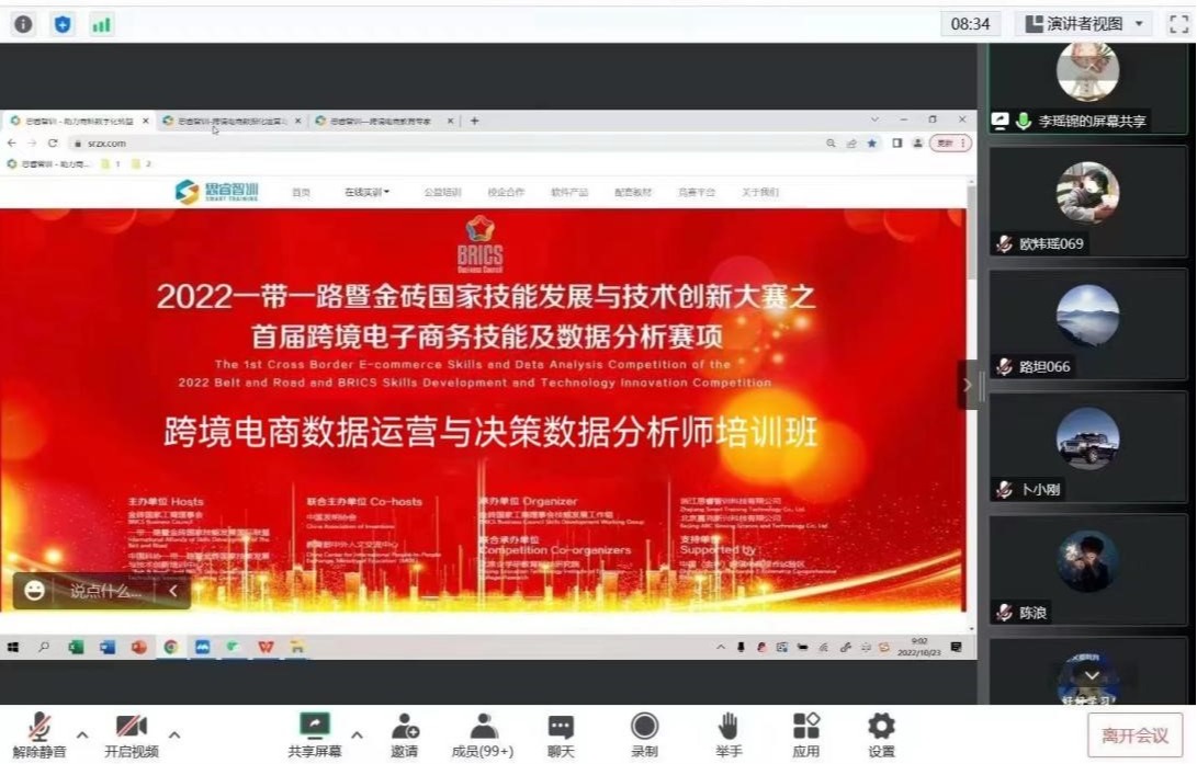 为更好地提升学生创新实践与就业能力,培养能应对数字经济时代贸易新业态快速发展需要的战略型人才,提升跨境电商数据化运营教学的理论与实操能力,学院邀请浙江师范大学经济与管理学院、山东思睿智训教育科技有限公司为2022级国际商务专硕及2021级跨境电商专业学生进行了跨境电商数据运营与决策数据分析师的培训。培训班(线上班)于2022年10月23日成功举办。