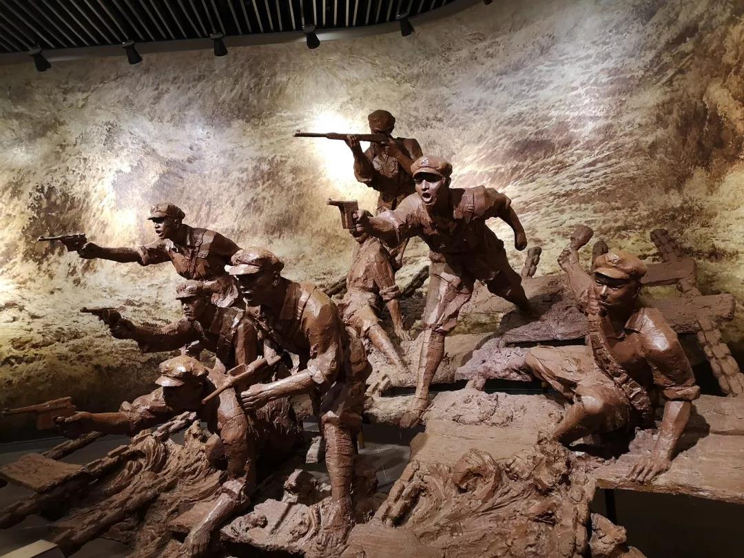 8月16日上午,我们正式开始调研。为了能更全面深入地了解馆内建设构造以及遵义会议那段历史,我们请了讲解员给我们详细介绍。首先我们来到会议会址实地,建筑物由主楼和跨院两部分组成,主楼的一楼为由彭德怀、杨尚昆、刘少奇、李卓然住所及总司令部一局作战室组成,二楼为红军总司令朱德,总政委周恩来,总参谋长刘伯承所住及遵义会议会议室(未开放参观)。然后我们来到了陈列馆,馆内设置《遵义会议伟大转折》专题陈列,我们跟随讲解员走过战略转移开始长征、遵义会议伟大转折、转战贵州出奇制胜、勇往直前走向胜利、遵义会议精神永存这五大章节。文字图片交相呼应,文物陈列构图美观,不管是大型景观艺术、雕塑、还是油画等作品都带给我们更强烈的视觉冲击,留下了深刻印象。像四渡赤水,遵义会议这样的场景,还会以三维成像,多媒体的形式展现出来。