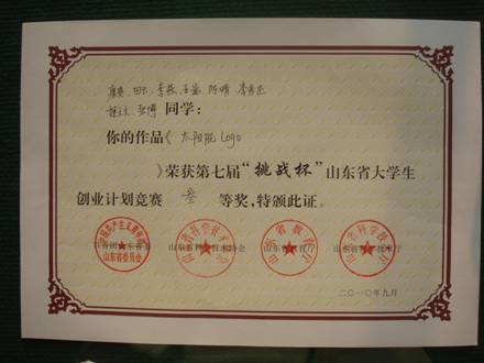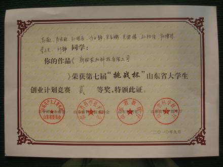 08级高薇等人获得第七届“挑战杯创业计划竞赛”省级二等奖