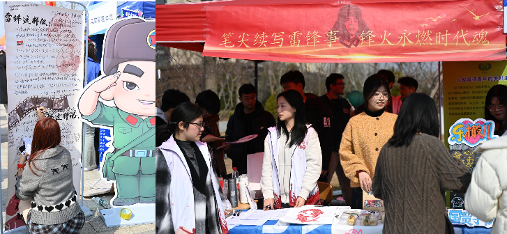 活动现场,学院以“先锋凝心”一“站”贴心”“青鸟暖心”等板块展示了学院志愿服务的品牌特色和风采。特别设置了互动摊位,邀请青年学生共绘“雷锋这样说,雷锋这样做”,将关于雷锋战士的感人话语和事迹书写在展板上,也铭刻在心里。学院还与济南市乐橄儿智障人士服务中心合作,以爱心义卖的形式募集善款,让广泛的参观者走进到特殊群体的学习生活中,切实参与到传承雷锋精神的实践体验之中。