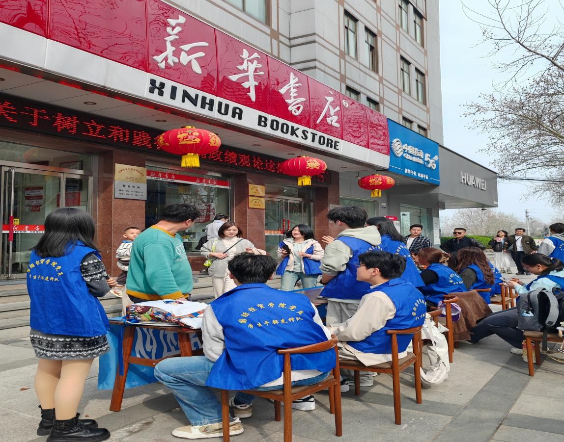 “小蓝贸”志愿服务团队携手章丘新华书店汇泉书店开展黄河流域文化宣传志愿服务活动。本次活动以“书香润黄河,知识传薪火”为主题,通过图书荐读、知识问答等丰富形式,将专业知识与志愿服务相结合,向市民传递黄河文化魅力,践行青年志愿担当。