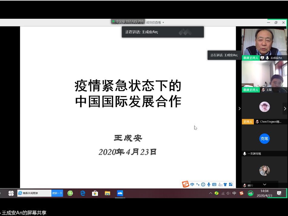 4月23日下午,商务部援外司原副司长、资深翻译家、我校顾问教授王成安先生应邀为我校国际发展合作本科创新实验班和研究生创新实验班的同学们作线上授课。