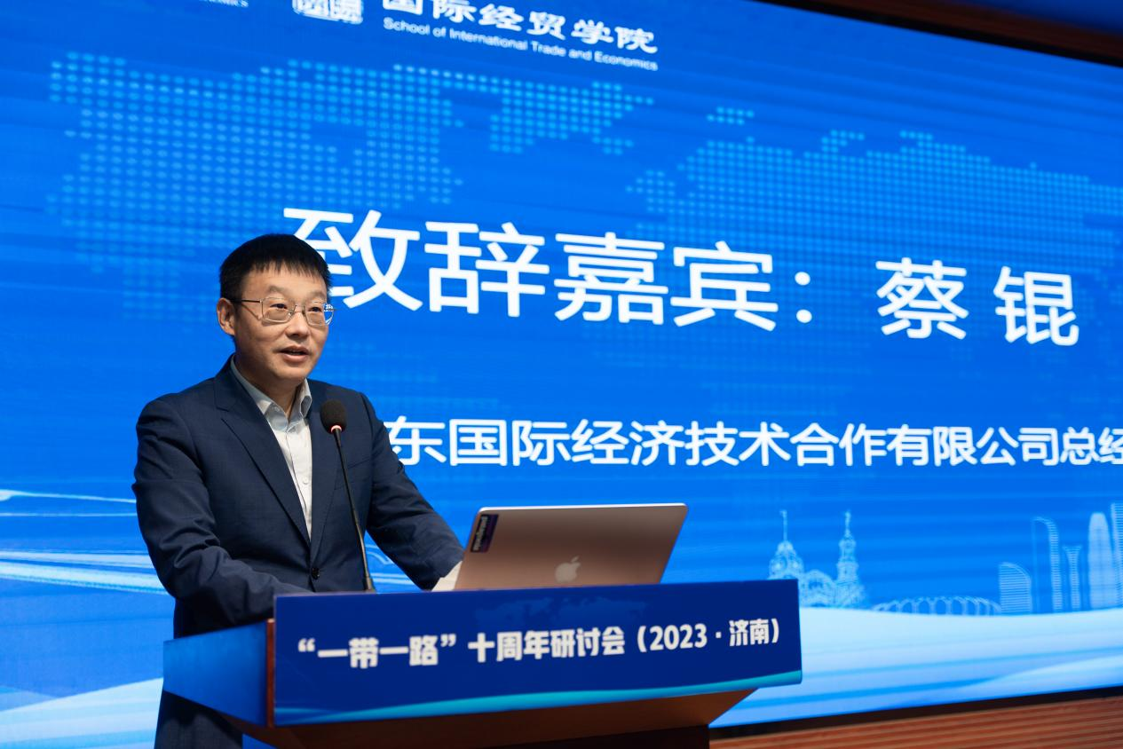 中国山东国际经济技术合作有限公司总经理蔡锟对本次“一带一路”十周年研讨会的胜利召开表示祝贺。他在致辞中指出,中国山东国际经济技术合作有限公司自2013年以来,积极投身“一带一路”建设。十年来,围绕基础设施建设、产业布局、产能合作等领域,聚焦经济走廊、境外合作园区、项目建设等内容,取得了一系列积极成效。此次双方联合成立数字贸易和国际合作现代产业学院,将积极融入国家“一带一路”宏伟战略,培养满足数字贸易和国际合作领域发展需求的高素质应用型、复合型、创新型人才,为提高产业竞争力和汇聚发展新动能提供人才支持和智力支撑,为全面推进中国式现代化和推动构建人类命运共同体作出新的更大贡献。