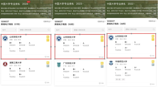跨境电子商务专业和国际经济发展与合作专业在全国专业排名中位列第一,专业评级均为A+,其中跨境电子商务专业是连续第三年在软科全国大学专业排名中第一,标志着新澳六合彩