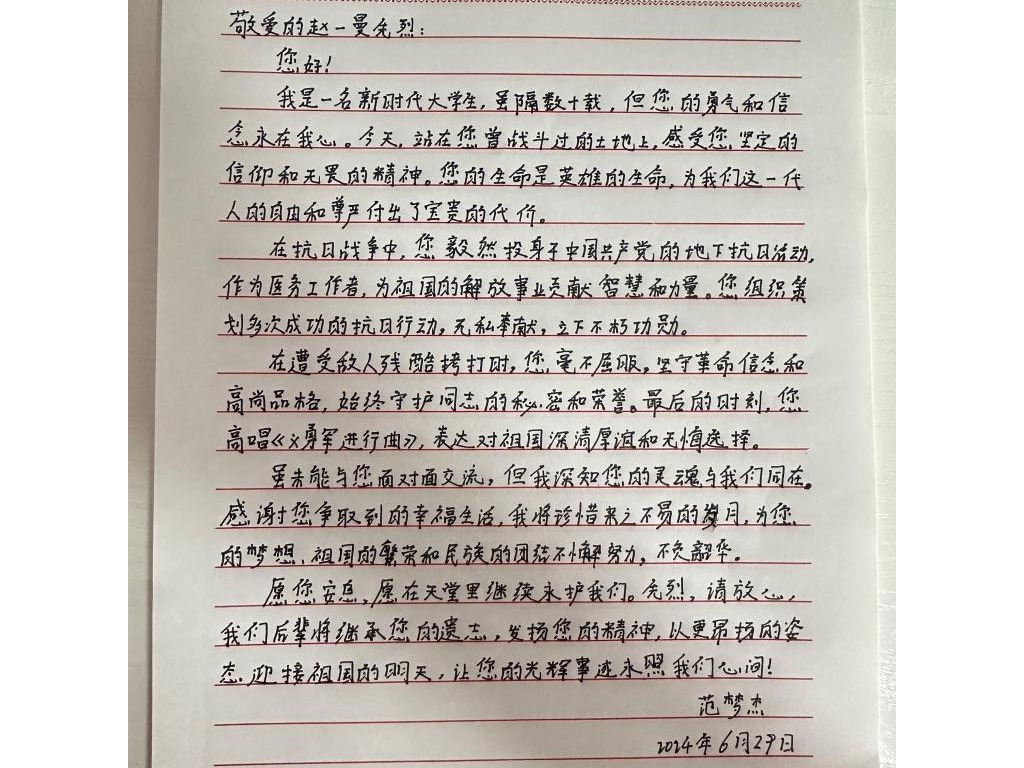 弘扬文化,党魂永驻。625日到30日,支部党员开展“我与先烈同时空”活动,党员们纷纷拿出纸笔和剪刀,以手写信和手工剪纸的形式,表达对党的忠诚和对美好生活的向往。这些作品不仅展示了党员们的艺术才华,更体现了对党的创新理论和实践成果的深刻理解。此次活动丰富了党员的文化生活,也加深了党员们对党的历史和理论的认识。正如习主席所言,“文化自信是一个国家、一个民族发展中更基本、更深沉、更持久的力量。”党员们在庆祝建党节的同时,也弘扬了中华优秀传统文化,增强了文化自信,表达了对党的光辉历程、伟大成就和革命精神的崇高敬意。