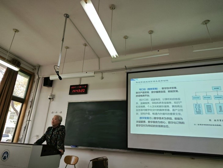 报告中,王晓红研究员详细介绍了数字贸易的概念、特征。她指出我国数字贸易蓬勃发展,数字贸易正在成为引领贸易创新发展的引擎。她强调我国数字贸易发展的新机遇与新挑战并存。王晓红研究员在讲述过程中引入大量的案例和详实的数据,深入浅出地提出了创新发展数字贸易的主要思路,引发了同学们的进一步思考。报告后,同学们就数字贸易发展趋势、统计与测度等问题与王晓红研究员进行了讨论。