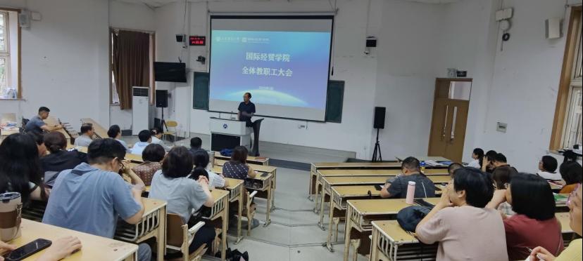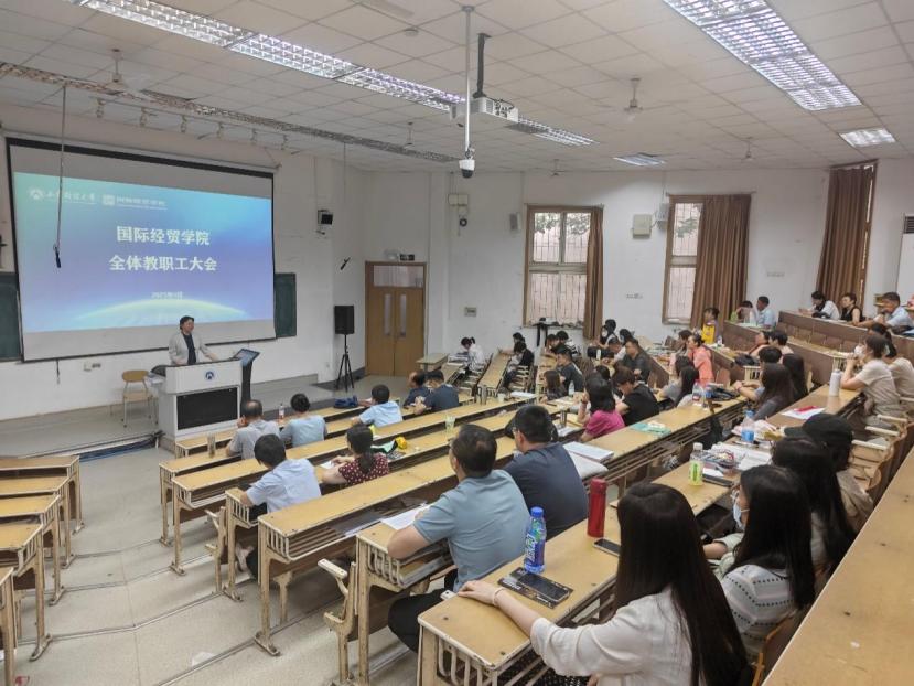 在舜耕校区第二阶梯教室召开学期末全体教职工大会,学院领导班子成员及全体教职工参会,会议由院长方慧主持。