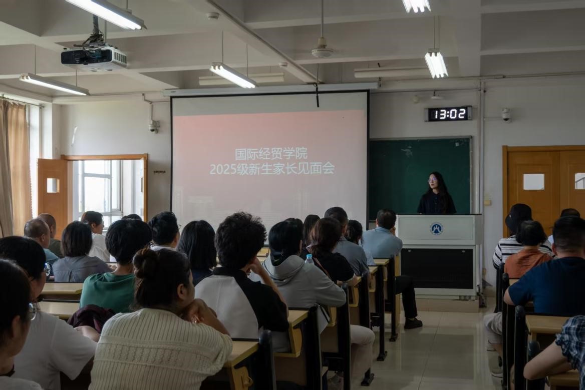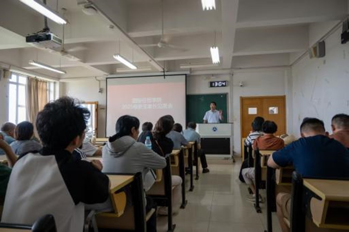 于1号教学楼308教室召开2025级本科新生家长见面会。学院党委副书记郝秀峰、25级新生辅导员王思远、国际经济系的副主任赵胜立、专业教师张潇叶及新生家长参与本次会议,开启家校共育新篇章。辅导员王思远主持本次会议。