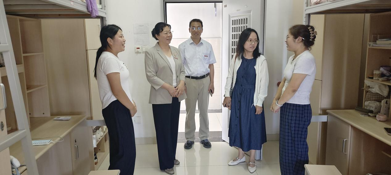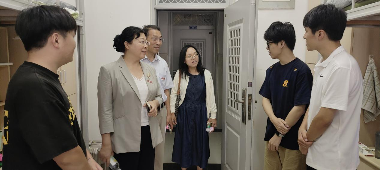 在宿舍区,领导们逐间走访,与新生面对面交流。院长方慧代表学院欢迎同学们加入国贸学院大家庭。她亲切询问同学们的家乡、本科院校及入学适应情况,鼓励新生尽快转换角色,充分利用学院师资与学术平台,在学科竞赛、学术科研中敢闯敢试、勇于创新,实现自我提升。