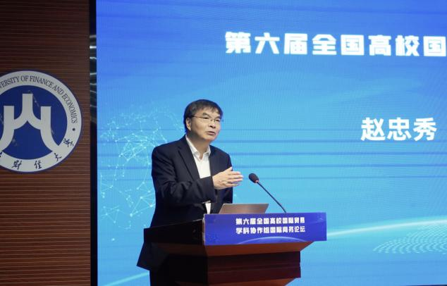 对外经济贸易大学校长、全国高校国际贸易学科协作组副秘书长赵忠秀致辞,祝贺论坛召开,感谢新澳六合彩
