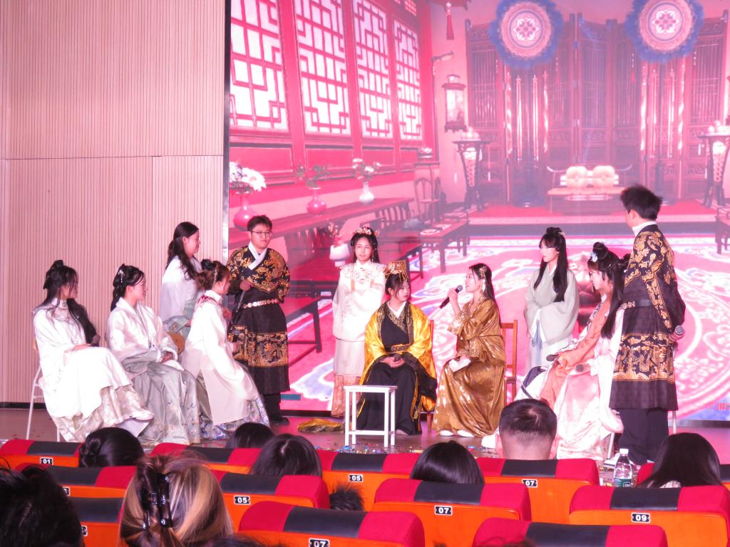情暖国贸,融动心间。学院艺术团带来的《初见山财大》展现财大青年朝气蓬勃、昂扬奋进的青春热情和赤诚情怀;歌曲串烧《青春的旋律,梦想的航程》用熟悉的旋律勾起童年与青春的回忆,用激昂的音符谱写梦想的航程;《排练风云》巧妙将排练时的插曲与精彩表演相结合,妙趣横生,惹人欢笑;《失恋阵线联盟》则以复古动感的节奏与充满创意的表演,将现场气氛推向又一个高潮。