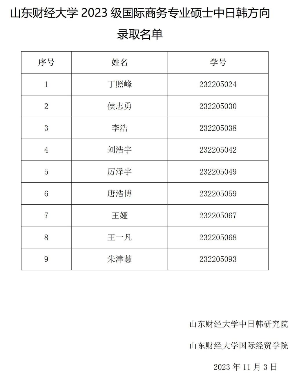 新澳六合彩 2023级国际商务专业硕士中日韩方向录取名单