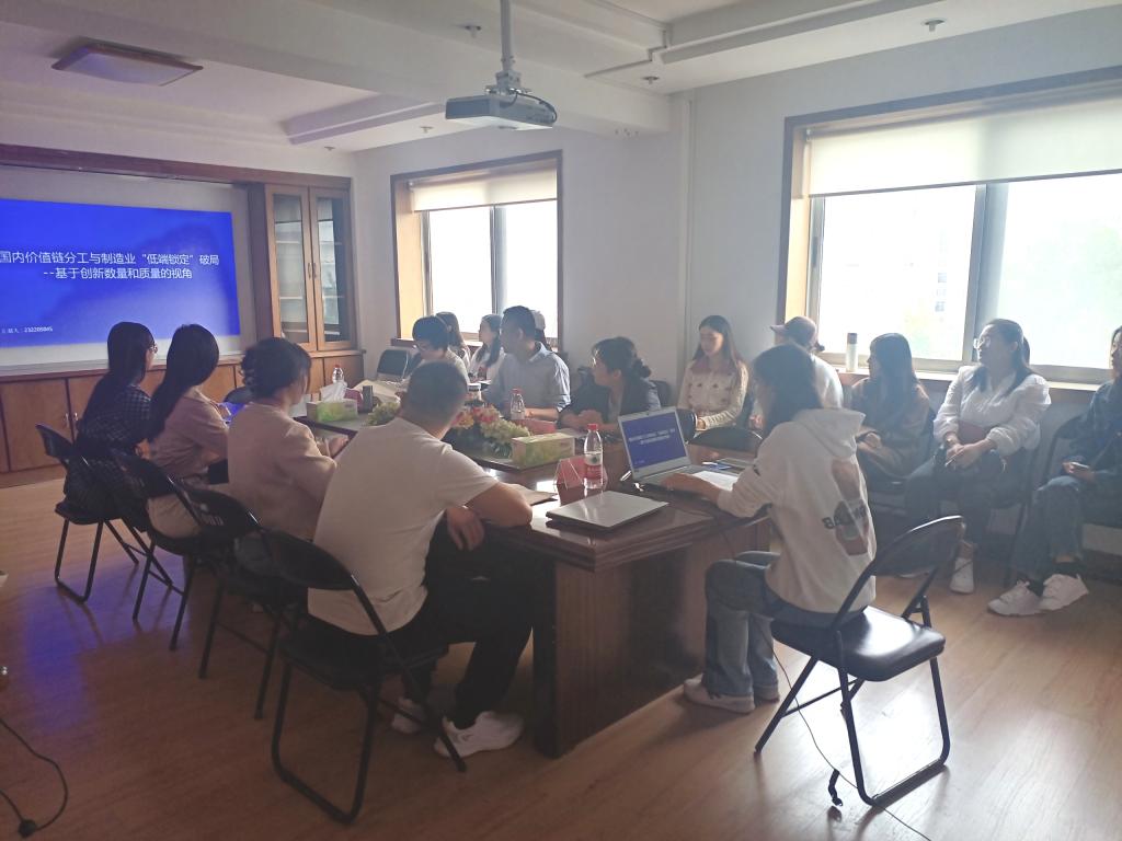 主讲人李文静(2023级研究生),师从刘磊副教授,主要研究国际贸易、技术经济等方向。积极参与国家社科基金、全国统计科学项目、省社科规划项目等多项课题。她就题为“国内价值链分工与制造业“低端锁定”破局 ——基于创新数量和质量的视角”的论文进行了分享,王倩教授和鞠姗教授分别对论文进行了精彩的点评,随后点评专家、主讲人与现场的青年学者们进行了深入的沟通交流,学术氛围浓厚。新澳六合彩