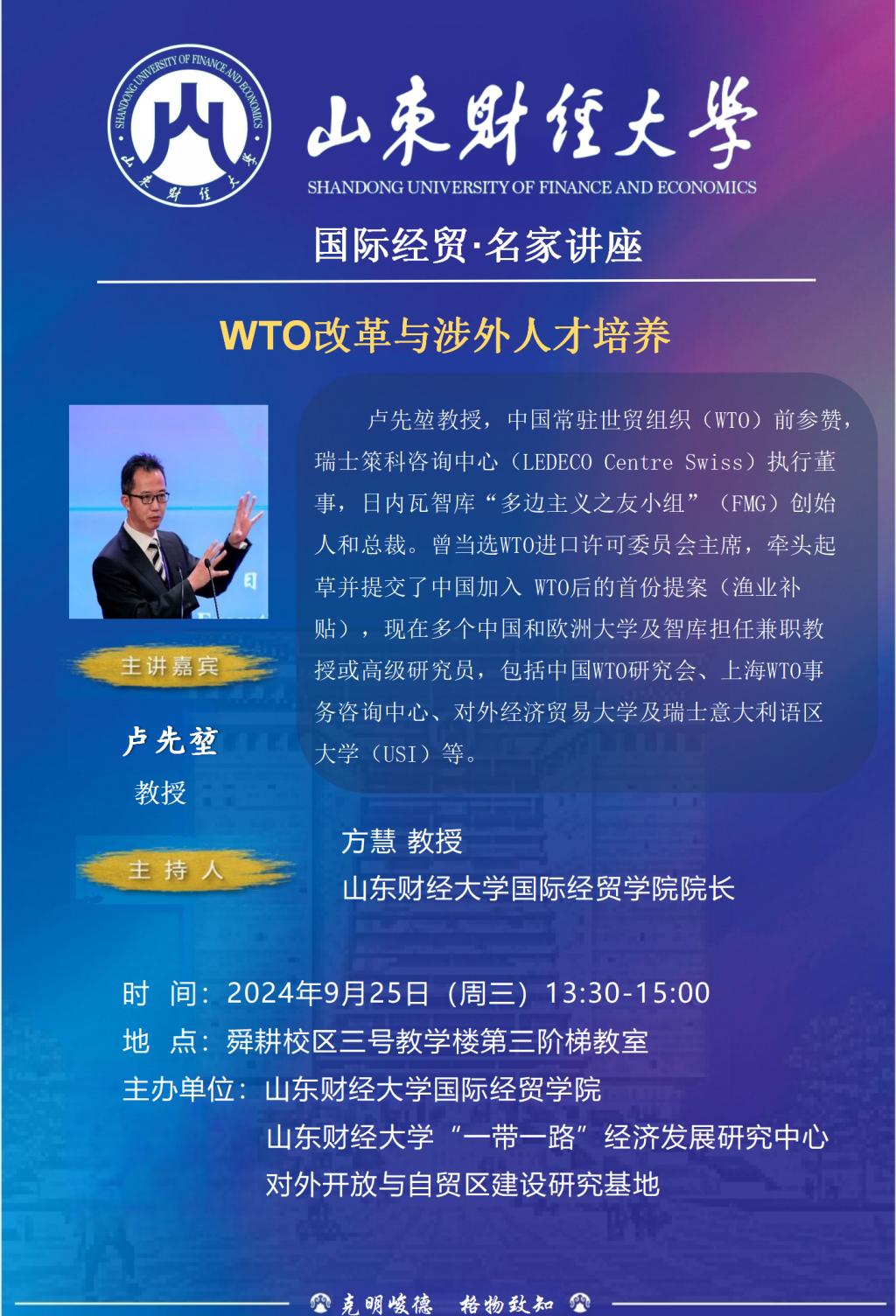 国际经贸|名家讲座:WTO改革与涉外人才培养
