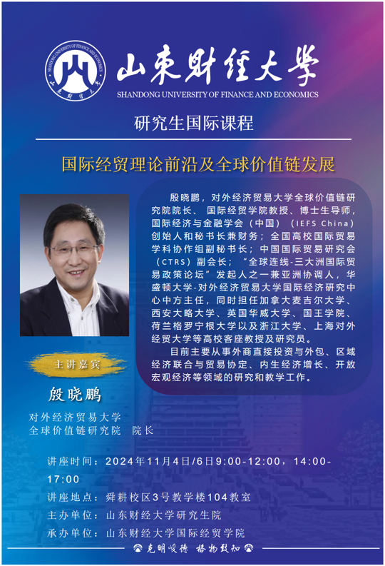 研究生国际课程:国际经贸理论前沿及全球价值链发展
