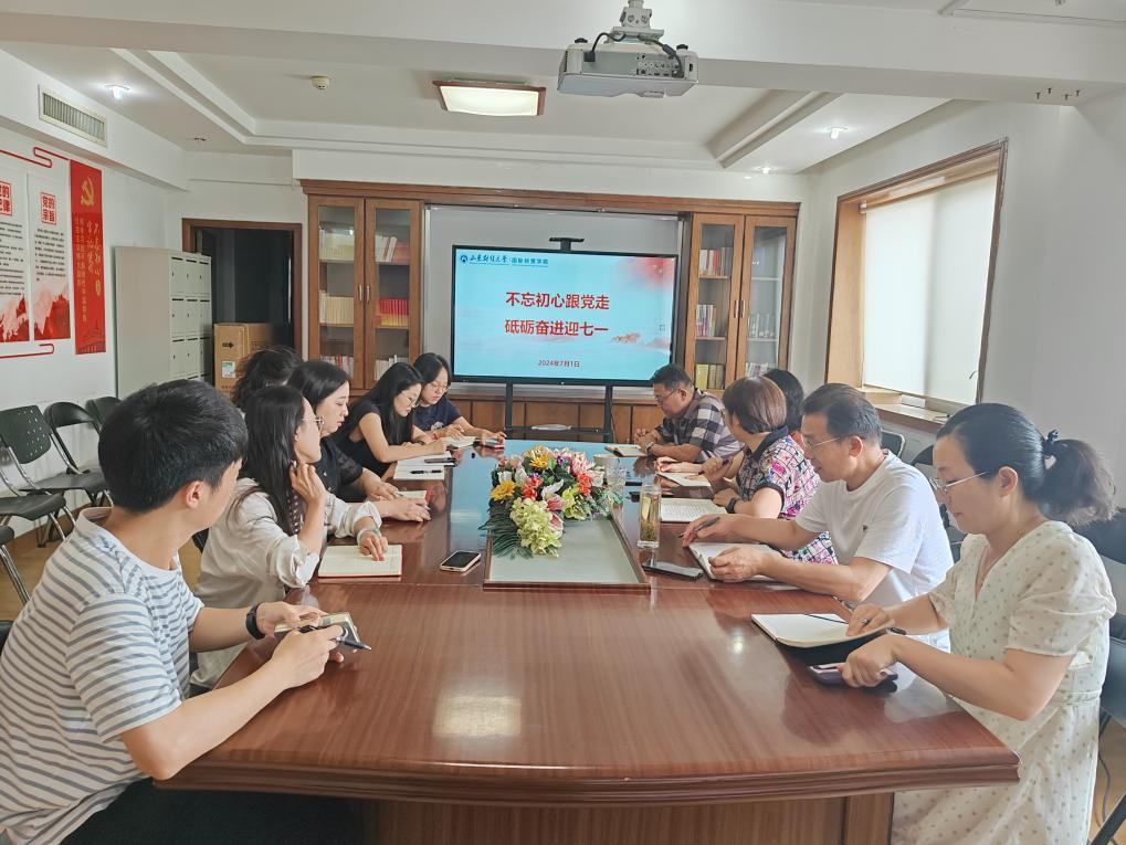 守初心、筑同心。7月1日上午,学院党委召开“不忘初心跟党走 砥砺奋进迎七一”党支部书记座谈会。会上大家先集中观看了高校党组织示范微党课第二期《党史中的纪律建设》,党委书记崔东峰传达了学校党建工作会议精神,强调党支部作为党的基础组织,是党在社会基层组织中的战斗堡垒,必须不断强化政治功能,提升组织力,确保党的路线方针政策和决策部署在基层得到全面贯彻落实。随后,各党支部书记围绕“如何发挥党支部战斗堡垒作用和党员先锋模范作用”主题,结合各自支部实际,分享了工作经验和创新做法。有的支部通过“党建+专业”模式,将党性教育与专业学习深度融合,提升了学生党员的专业素养和政治意识;有的支部通过开展“我为群众办实事”实践活动,切实解决了师生的实际困难,增强了党支部的凝聚力和服务能力。最后崔东峰带领大家简要回顾了党的光辉历程,号召全体师生党员牢记初心使命,勇担时代重任,为贯彻落实学校第二次党代会发展目标而不懈奋斗。