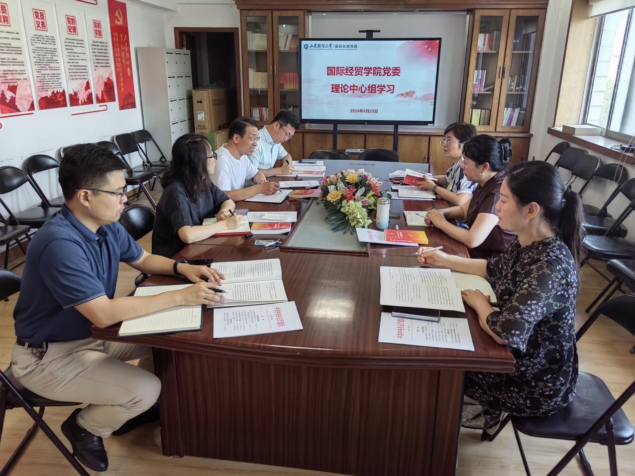 8月23日上午,学院党委理论学习中心组集中学习,专题学习党的二十届三中全会精神。大家集中学了习近平总书记在党的二十届三中全会上的重要讲话和全会通过的《决定》,并以党的二十届三中全会《决定》学习辅导百问为辅助学习材料。党委书记崔东峰、院长方慧、副书记郝秀峰、王斐斐、副院长刘鲁浩参加学习,院长助理邬彩霞、王磊列席参加。