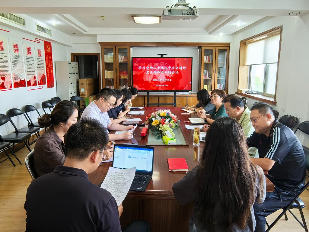 委召开学习党的二十届三中全会精神党支部书记专题会议,学院党委书记崔东峰,副书记郝秀峰、王斐斐和全体党支部书记参加会议。