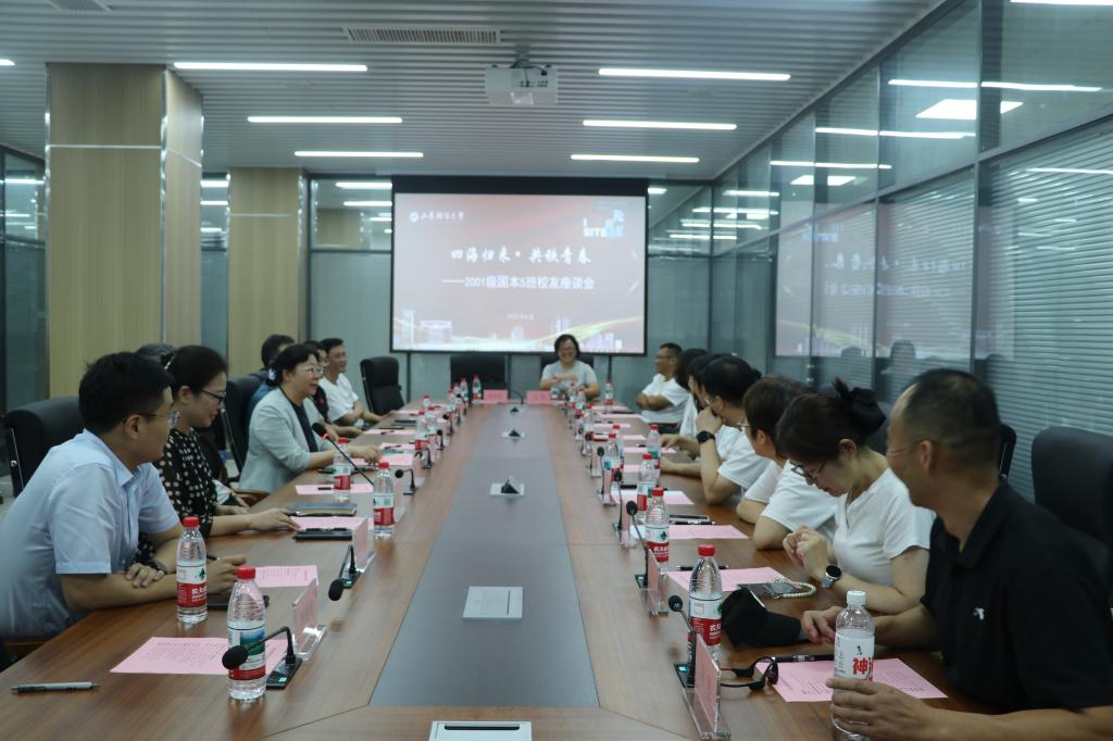 院长方慧,党委副书记郝秀峰、王坤,副院长王舒鸿、王磊,团委书记李瑞雪与2001级国本5班校友代表参加本次座谈会。会上特邀该班的两位时任辅导员老师:山东省区块链金融重点实验室党委书记武方安和公共管理学院党委书记田远。会议由王坤主持。