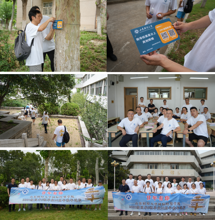 2001级国本5班的校友相聚舜耕校区,参加“廿年有你”毕业20周年秩年返校活动。