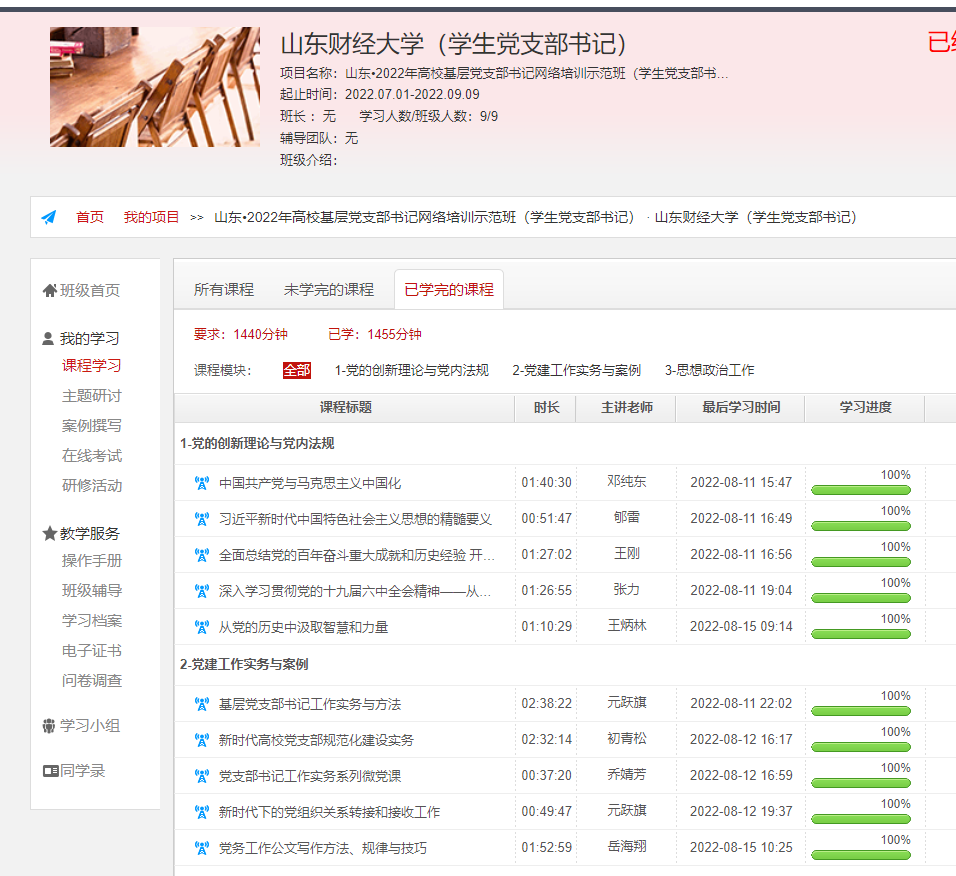 为深入学习贯彻习近平新时代中国特色社会主义思想,贯彻落实新时代抓好党建对党支部书记的要求,着力提升学生党支部书记素质,推进学生党建工作高质量发展,8月3日到9月3日,新澳六合彩研究生党支部书记李瑞雪参加山东2022年高校基层党支部书记网络培训示范班的教育学习。