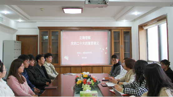 研究生“党的二十大精神宣讲团”成立仪式暨第一次宣讲会在508会议室顺利举行。仪式由研究生党支部书记李瑞雪主持,学院党委书记崔东峰、副书记王斐斐、党支部宣讲团成员及部分研究生党员、入党积极分子参与学习交流。