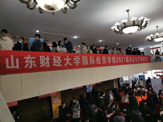 12月29日,学院2021届毕业生专场招聘会在舜耕校区礼堂举行,中信证券(山东)有限责任公司、山东金谷控股集团有限公司等62家单位,为同学们提供了涉及外贸、财务、金融、外语等方向的近4000个岗位需求。招聘会现场,人头攒动,同学们认真阅读单位的招聘材料,询问单位情况,招聘人员则主动散发招聘彩页,耐心向同学们进行介绍。一上午的时间,参会毕业生达2000余人次。下午,10家企业进行了宣讲面试。